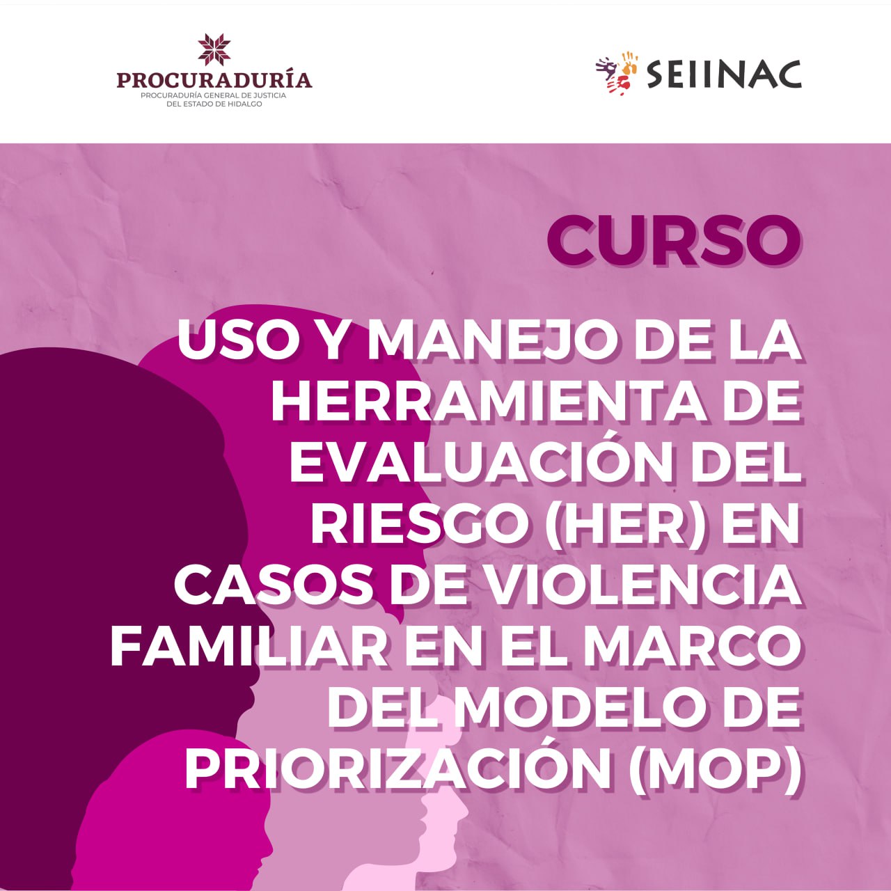 Este curso está diseñado para capacitar a personas Agentes del Ministerio Público en el uso y manejo de la Herramienta de Evaluación del Riesgo (HER) en casos de violencia familiar, dentro del Modelo de Priorización (MOP). A través de módulos teóricos y prácticos, quienes participen aprenderán a identificar, evaluar y priorizar los casos de mayor riesgo, garantizando una atención oportuna a las víctimas.